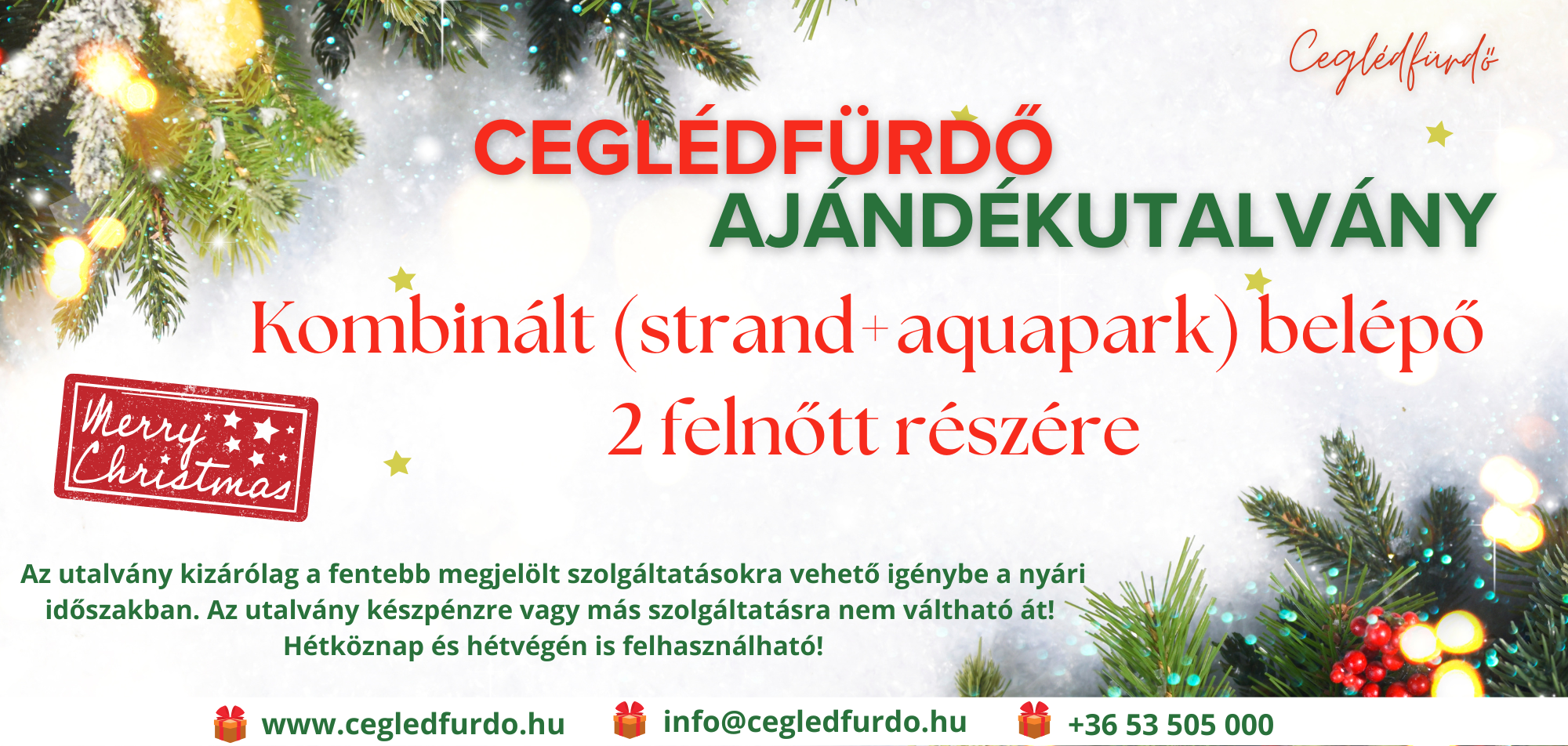 KARÁCSONYI AJÁNDÉKUTALVÁNY: KOMBINÁLT BELÉPŐ (AQUA CENTRUM CSÚSZDAPARK + GYÓGY-ÉS STRANDFÜRDŐ) 2 FŐ RÉSZÉRE