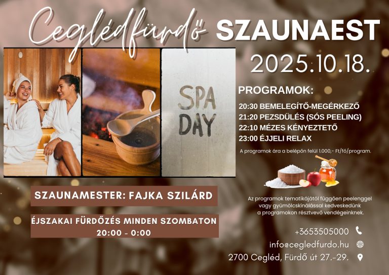 A szaunaest programjain az éjszakai fürdőzés belépőjén felül, 1.000.-Ft (fő/program) díj ellenében vehetnek részt Vendégeink. A nagy érdeklődésre való tekintettel a részvétel korlátozott létszámban lehetséges.