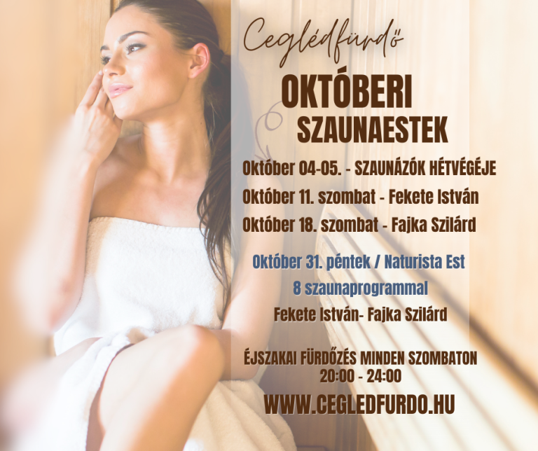 - Október 04-05. szombat, vasárnap – SZAUNÁZÓK HÉTVÉGÉJE – Fajka Szilárd